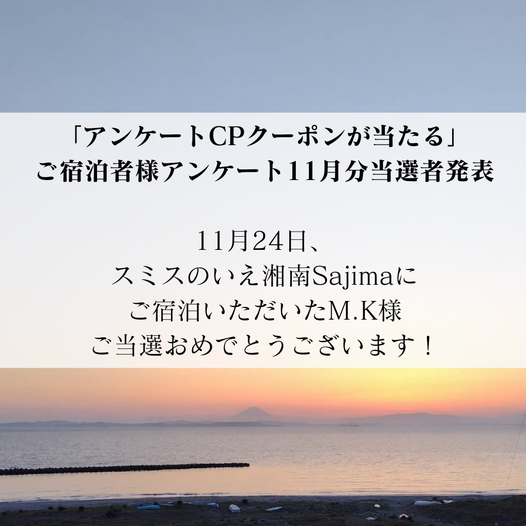 【当選発表】宿泊者様限定アンケートキャンペーン★11月分★